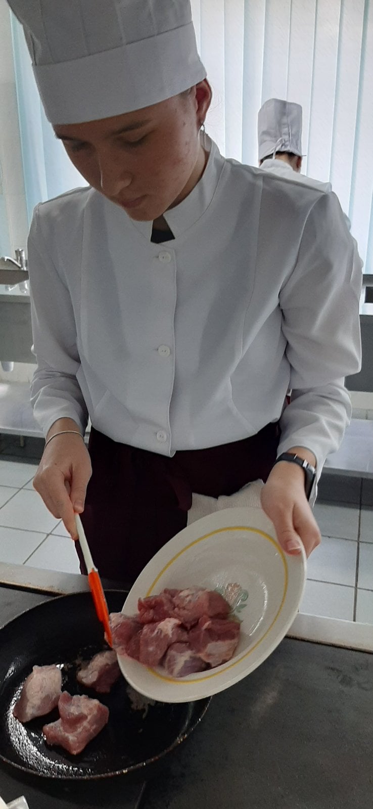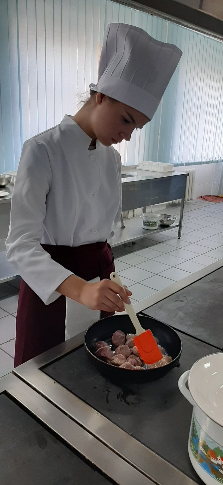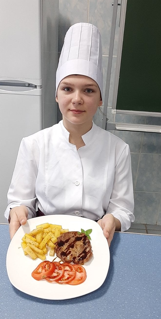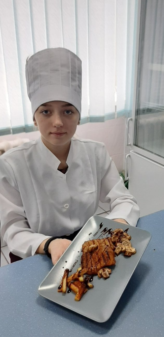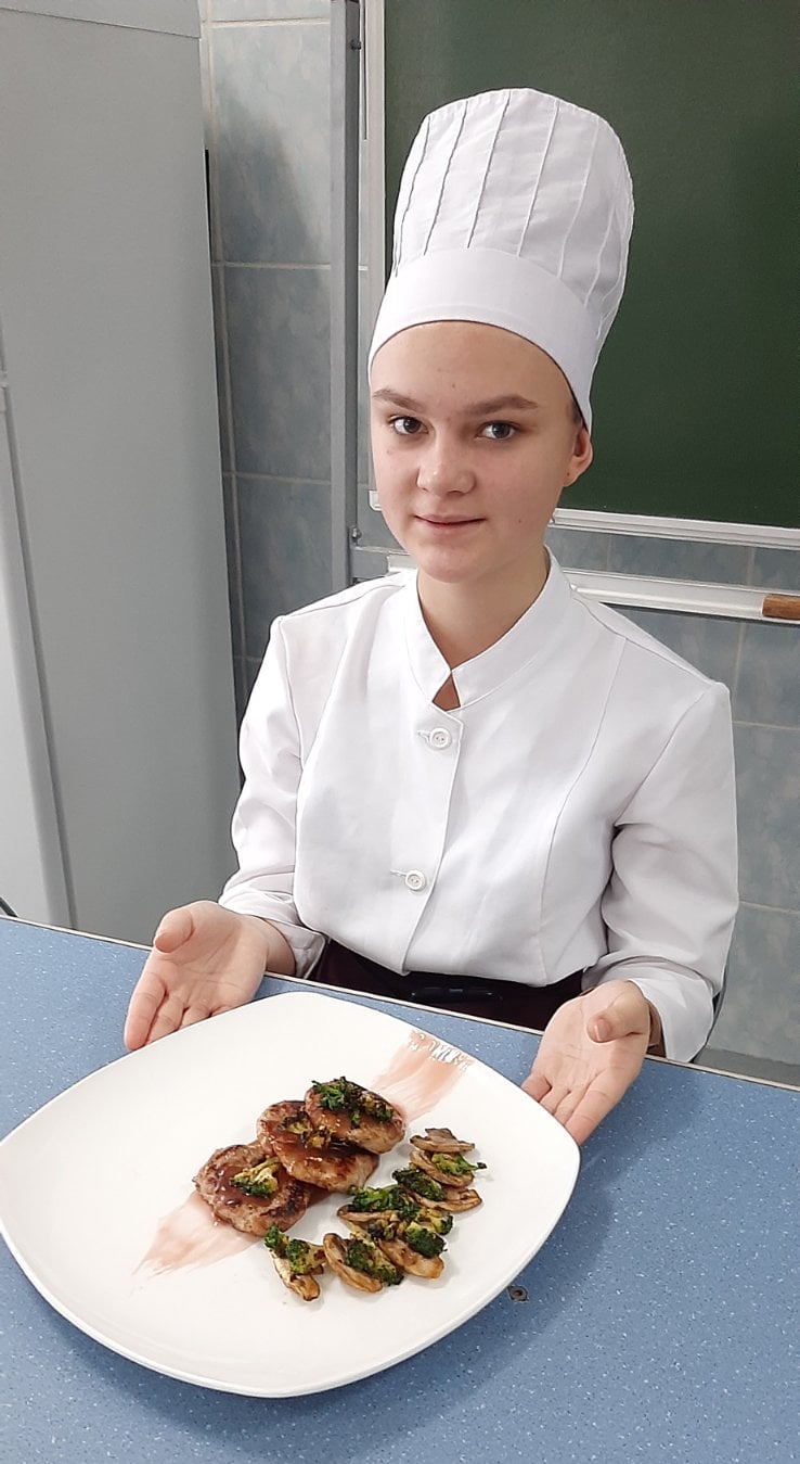 На основі набутих знань та навичок з вивчених тем, учні самостійно під керівництвом майста готували страви з м’яса, птиці та риби. Майстер виробничого навчання Ревко Валентина Степанівна